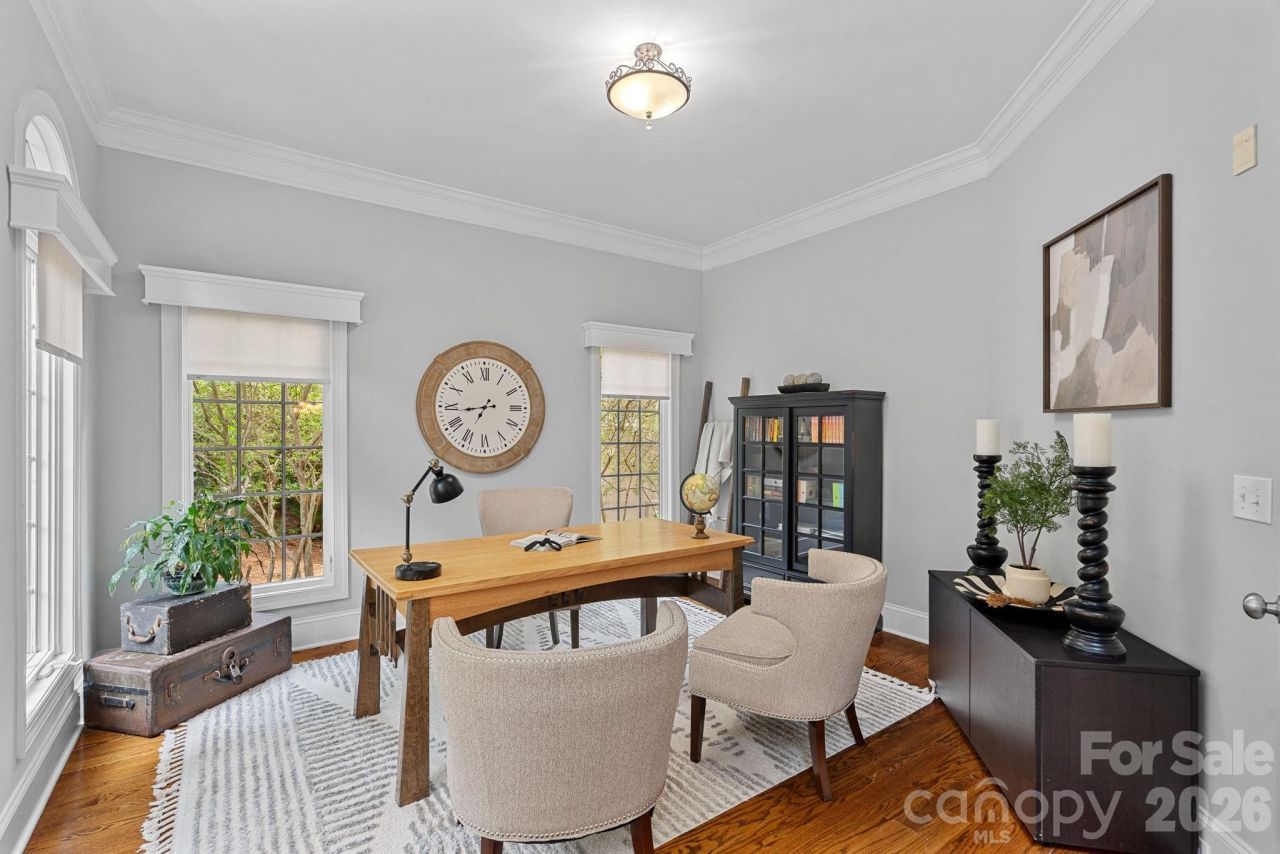 WELCOME TO YOUR STUNNING CUSTOM HOME! This meticulously maintained 5 bedroom, 4 bath property is nestled on a private lot in the quaint Anniston Grove community and ZONED FOR TOP RATED WEDDINGTON SCHOOLS! Boasting over 5,100 sqft, this roomy home offers exceptional living & entertaining space. The heart of this home is its spacious gourmet kitchen, with an oversized island for food preparation, separate wine, coffee & additional eating bar; perfect for gatherings! The kitchen opens to the charming family room w/ coffered ceiling & gorgeous stone gas fireplace. This home has custom rounded walls, tall oversized doors, tons of storage closets as well as extensive trim/millwork, a must see to appreciate! The main floor dedicated office is ideal for remote work, while the expansive primary suite includes a cozy sitting area, a generous walk-in closet & flex space with window ideal for a gym, second office, or separate his/hers closets. Step outside to your private retreat w/ newer composite deck (2024) & covered outdoor entertainment area complete w/ grand wood burning fireplace (2016). There is cleared open space between deck & covered patio area, perfect for a backyard pool (see rendering)! Nearby shopping, grocery, parks and schools. Don't miss the opportunity to own this home full of luxury & comfort.