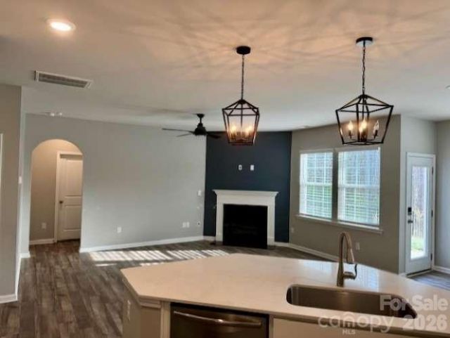 Welcome to 190 Tackle Box Drive in the recommendable Falls Cove community of Troutman! This beautifully 5bedroom/4 full bathroom-maintained home offers exceptional space and flexibility, featuring a downstairs master/mother-in-law suite complete with a on suite full bathroom including a walk-in shower-perfect for guests or multi-generational living. A private home office with elegant glass French doors. The open-concept kitchen flows seamlessly into the dining and living areas, where you'll enjoy a cozy gas fireplace and luxury laminate oak flooring that extends throughout the entire home. Upstairs, an oversized primary suite boasts a spacious bath with tile flooring and a large walk-in closet. This home has a large upstairs laundry room that includes a new washer, and dryer. Step outside to a fenced backyard oasis backing up to a private wooded nature preserve with seasonal stream. Enjoy the community 5 lap pool/beach entry splash area, playground, walking trails, indoor gym, clubhouse!