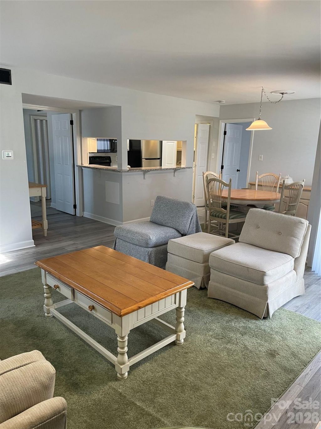 Awesome location! Ground floor condo that is adjacent to Olde Towne Village which includes a Harris Teeter, several restaurants, Starbucks, UPS store, dry cleaner, CVS, etc. Super convenient! Seller is a NCREC Broker (#181172) who had a family member living in the condo since 2020. Layout is similar to 2BR units in Ashfield Court, but in this unit the second Bedroom is set up as flexible space. Like a second bedroom, this room is connected to its own half bath, which has a jack-and-jill door to the walk-in shower space. However, this room has folding doors that open to the livingroom, and has limited dedicated closet space, so it is classified as a flex room. This room could serve as a bedroom (just add an armoire) or as an office with a pull-out couch for guests, etc. The interior of the condo was renovated in 2020, has had very little wear and tear, and is currently move-in ready. The overall floor plan is open and ideal for guests. The patio is shaded/cool and features an outdoor lockable storage closet. Appliances and furniture currently in the condo are available. HOA monthly is only $315 and covers basic common area maintenance. Landscape is a park-like setting. No pool or other common amenities keep HOA costs down. All assessments have been paid. Two parking spots right in front of condo. Mailbox and trash/recycle bins steps from condo entrance. Very convenient all the way around.