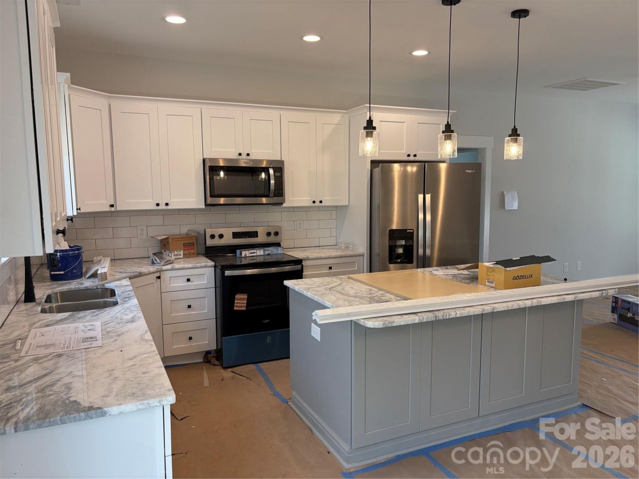 Adorable one story craftsman inspired brand new construction home in the hot growing area of Kannapolis. Open modern plan with den, kitchen & dining together. Roomy 9ft ceilings throughout. Dream kitchen with marble countertops, soft close shaker cabinets, subway tile backsplash, stainless appliances, pantry, & recessed lighting. Primary bedroom with bath suite with custom tile shower, walk in closet, and double marble vanities. Second bath has a tub & marble counters as well. Luxury waterproof laminate plank floors throughout the home. Rocking chair front porch and back patio opens up to large back yard. Minutes away from downtown Kannapolis and convenient to Kannapolis parkway and I85 . Area has a ton of new construction and development around it. Schedule your showing today!